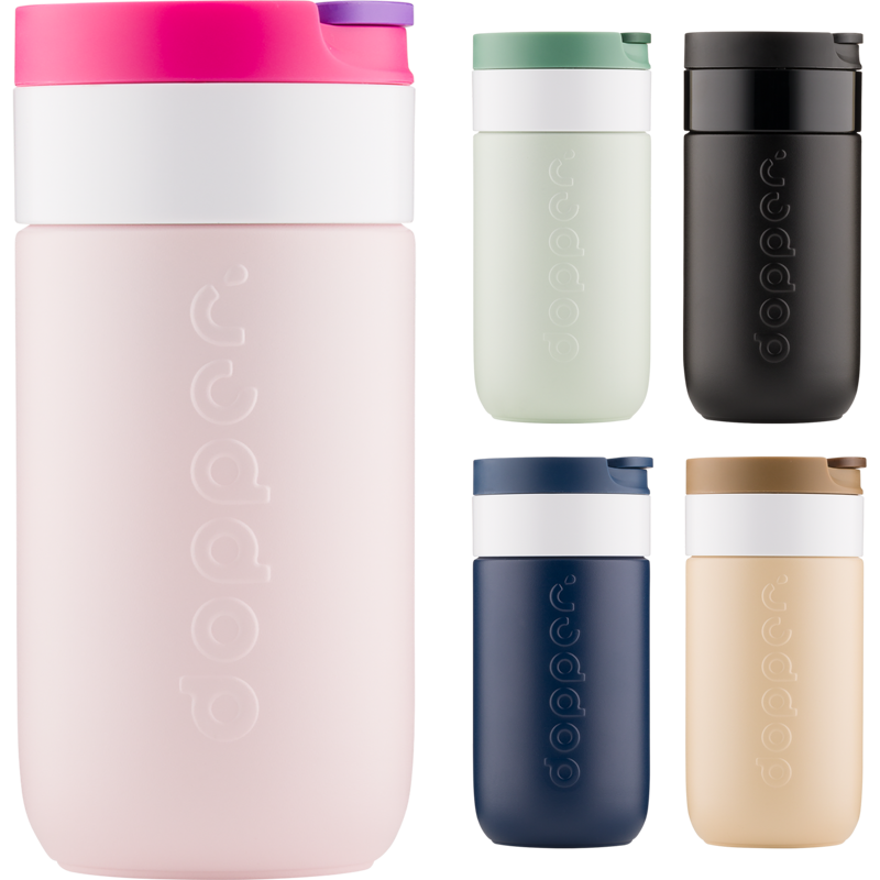 Whether it's morning coffee, midday hydration, or an evening sparkling drink, this Dopper Travel Mug is made to handle it all. It keeps hot drinks warm for up to 6 hours and cold drinks cool for up to 20 hours. Designed with a double-walled stainless steel body made from 90% recycled steel and finished with a durable powder coating. The easy-to-open flip cap makes sipping on the go simple and convenient.