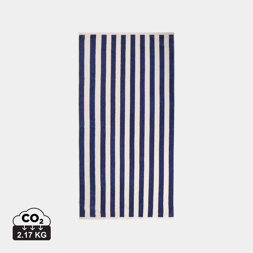 This beach towel is the ideal companion for sunny days at the beach, on the boat or by the pool. Woven in a classic two-coloured striped pattern and made from GRS certified recycled cotton, it offers a very soft handfeel and lasting comfort. With its heavy 450 GSM weight, the towel combines excellent absorbency with a premium quality. Size 80x160cm. Responsibly made in Portugal. Certified by GRS (Global Recycled Standard), GRS certification guarantees that the entire supply chain of the recycled materials is certified. The total recycled content is based on the overall product weight. This product contains 50% GRS certified recycled cotton.