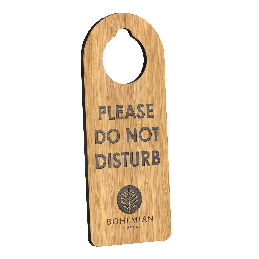 The Bamboo Door Sign is a fresh take on promotional and functional signage, combining natural aesthetics, everyday practicality, and sustainability. Manufactured in the UK for complete quality control, dependable lead times, and a reduced carbon footprint, these signs are the sustainable, more durable, upgrade from plastic or laminated cardboard options.Each sign is cut from 5mm sustainable bamboo, sourced only from licensed managed forests and produced in facilities certified to ISO 9001 (quality management) and ISO 14001 (environmental management), giving you complete confidence in both craftsmanship and provenance.Hand-finished with a protective satin wood oil that enhances the natural grain, these lightweight yet durable signs hang neatly on any door handle and can be personalised with either photo-quality full-colour print or crisp laser engraving.The versatility of the Bamboo Door Sign makes it ideal across multiple sectors: in hospitality and leisure, they provide stylish, eco-conscious "Do Not Disturb" and housekeeping signage; in corporate and office environments, they serve as branded meeting room or "in use" signs; while in events and campaigns, they become unique giveaways or promotional pieces that hang directly in view. Wherever they're used, these signs deliver everyday functionality whilst putting your brand at the heart of a sustainable story.At the end of life, the sign biodegrades safely, returning to nature and avoiding landfill, proof that effective branding and sustainability can go hand-in-hand.