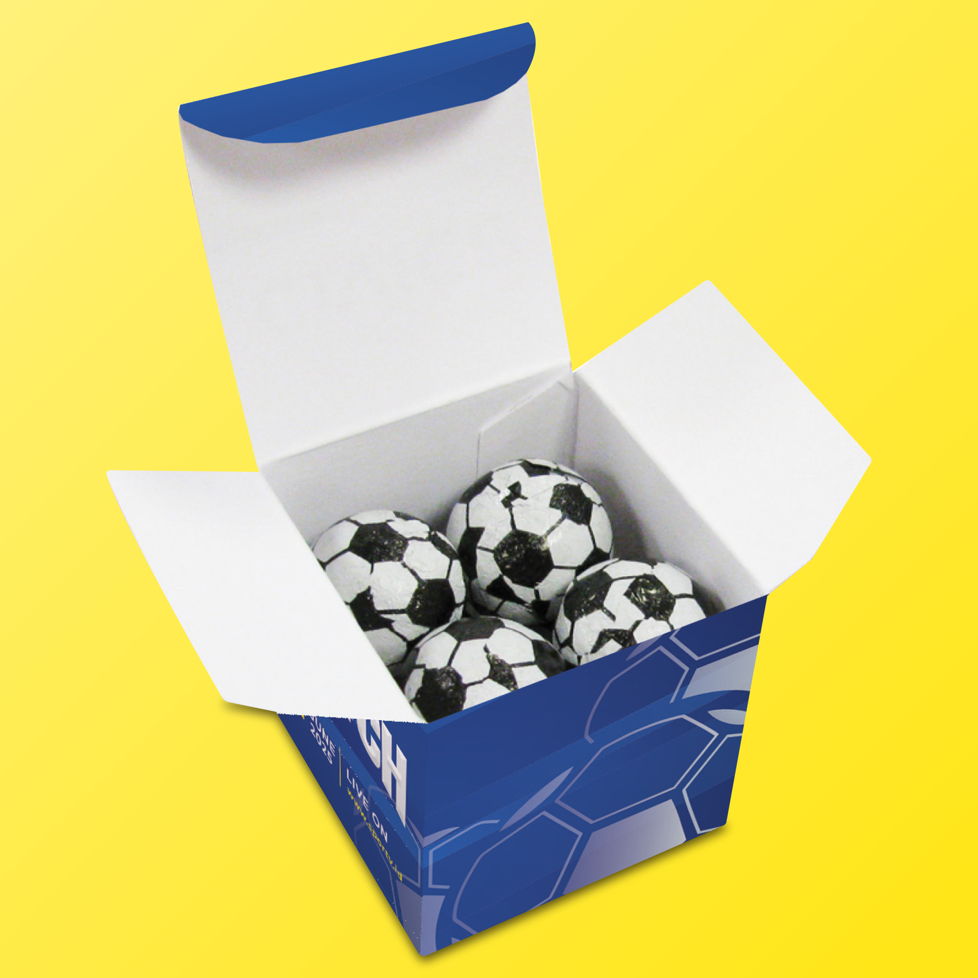 Stand out with our Personalised All-Over Full Colour Print Football Cube Boxes, the perfect promotional giveaway for a sport event, campaign or corporate gift. Printed in vibrant full colour on five sides (with ingredients listed on the base), these eye-catching cube boxes offer maximum branding impact in a compact, easily transportable format.