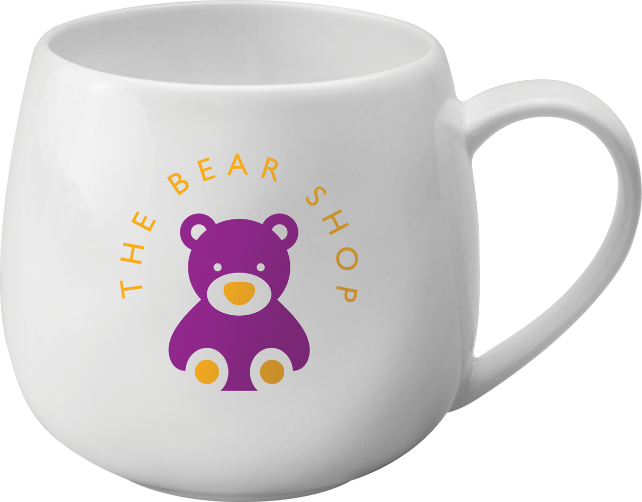 The Hug Mug is a popular bone china shape, with a curved body and handle. With a large capacity, this mug would suit any modern styled cafe. Capacity 375ml. Height 9cm.