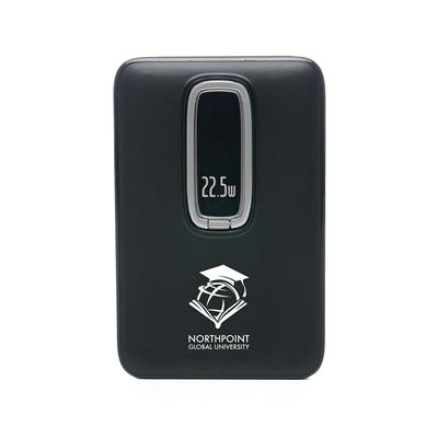 3-in-1 Magnetic wireless power bank for Qi-enabled phones, earbuds and Apple Watches, also comes with adhesive metal ring (for non-magnetic, phones that charge wirelessly). 20W fast charge with extra-large capacity - 10000mAh Lithium battery. Comes with digital display with fold out stand. Made from ABS and features a USB-C in/output and USB-A output port. Includes built-in wrap-around 24cm USB-C to USB-C charging cable, plus an extra USB-C to USB-C cable.