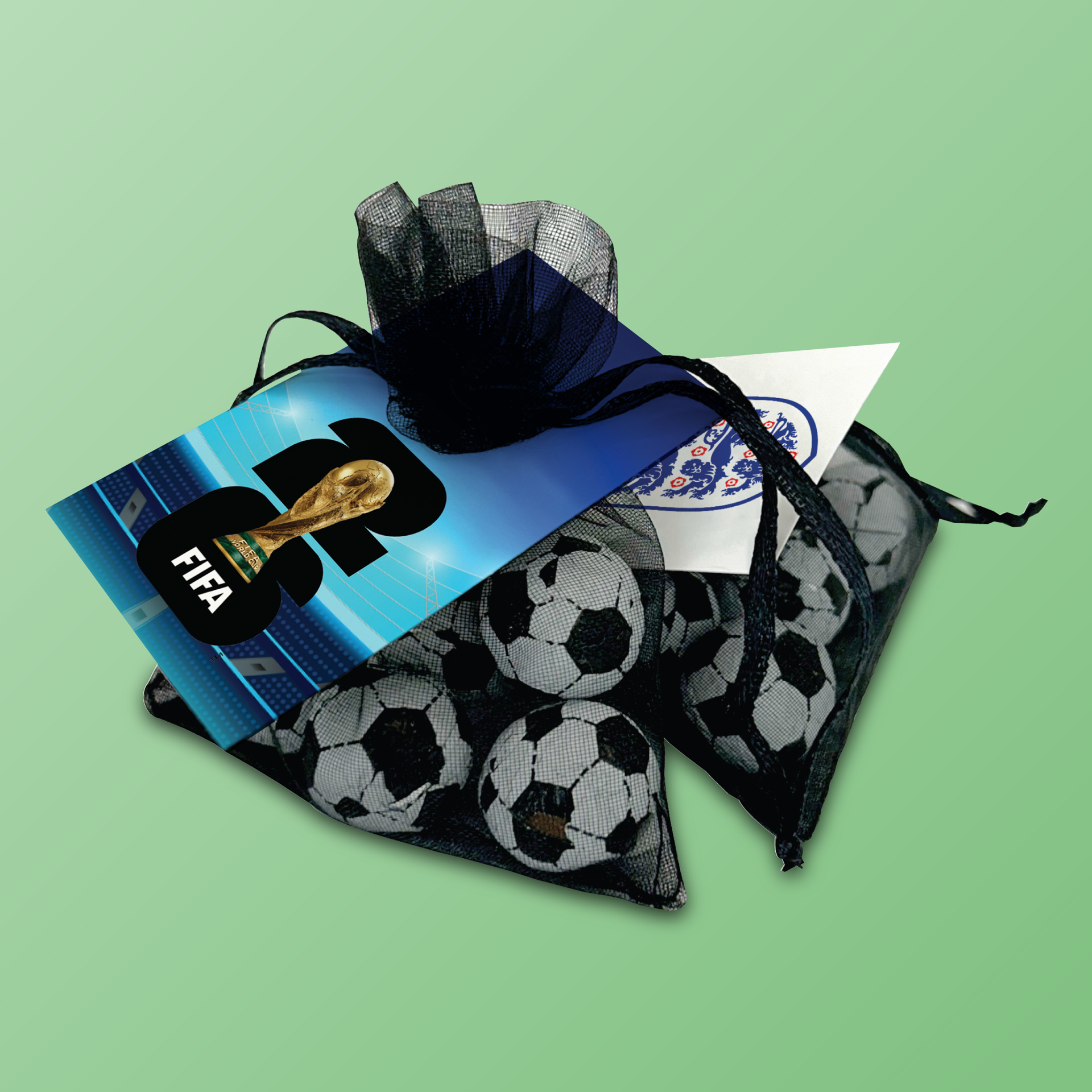 Add a charming touch to your Sports event or promotion with our Football Organza Bags. Each bag is finished with a bespoke full colour printed tag, making it the perfect branded giveaway or promotional treat.