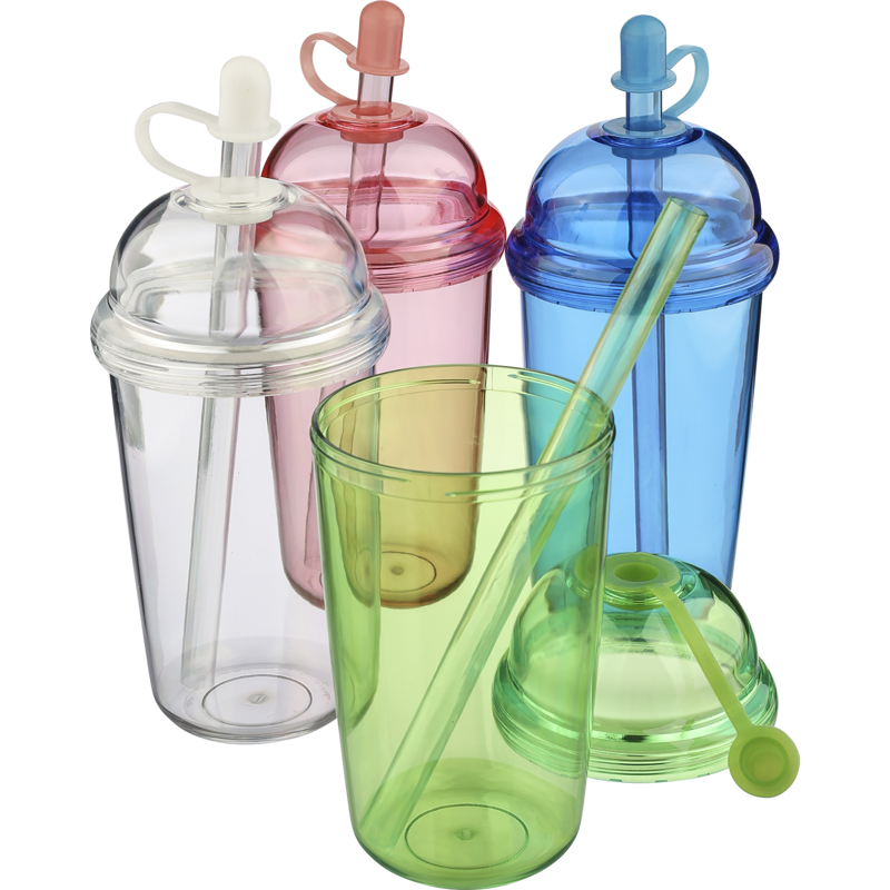 Travel mug with a 500ml capacity, ideal for cold beverages. Made with recycled PET (rPET), reducing plastic waste while delivering the same strength and durability. The mug features a secure screw lid and a straw with a matching coloured silicone closure to help prevent spills. Designed with a comfortable grip for easy handling. Made from recycled materials as a more sustainable choice.
