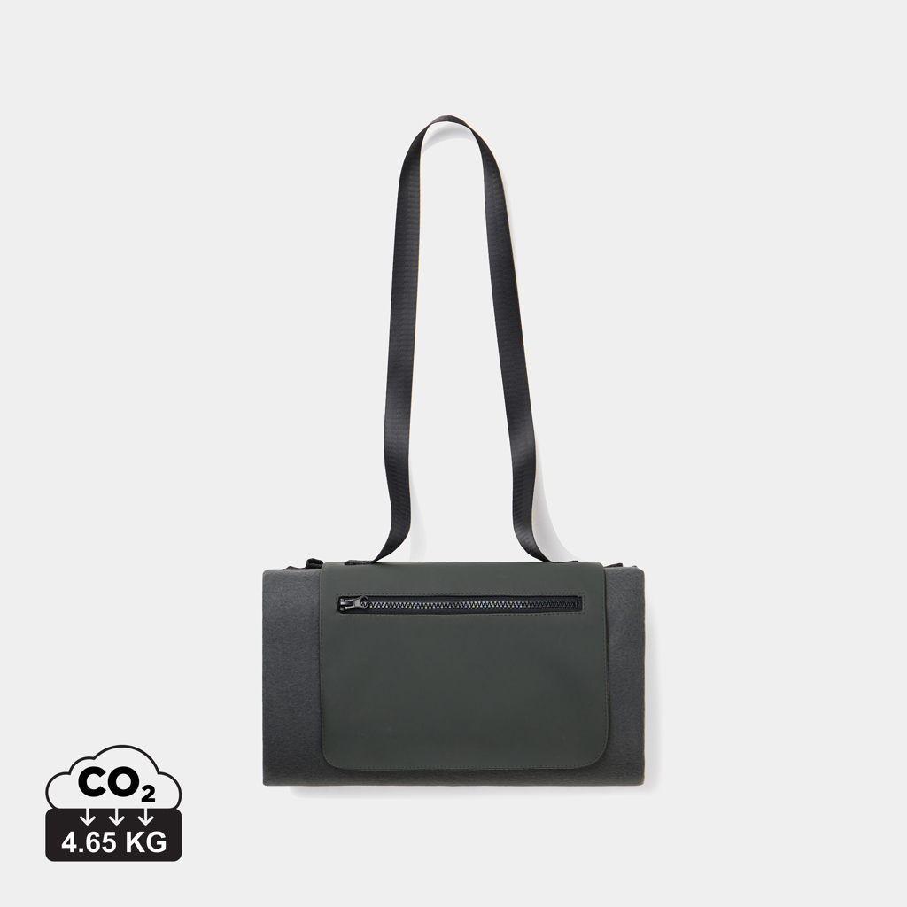 Head outdoors and bring the Baltimore picnic blanket with you. The blanket features a soft fleece surface for maximum comfort and a water-resistant PEVA backing that protects against moisture and cold. Equipped with a long handle for easy and comfortable carrying and a practical front zip pocket for keys, phone or other essentials. Certified by RCS (Recycled Claim Standard), RCS certification guarantees that the entire supply chain of recycled materials is certified. The total recycled content is based on the overall product weight. This product contains 47% RCS certified recycled polyester.