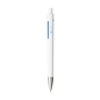 Blue ink ballpoint pen made from recycled ABS. With a unique design: the barrel and clip of this pen is designed in one piece. With colourful accent under the optical 'floating' clip. GRS certified. Total recycled material: 75%.